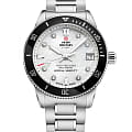 Кварцевый механизм с высокой точностью. Минеральное стеклоМинеральное стеклоМинеральное стекло представляет собой искусственно выращенный минерал кварца. Такое стекло отличается особой устойчивостью к повреждениям и царапинам. Уступает по некоторым качествам сапфировому стеклу. устойчивое к появлению царапин, обладающее высокой прозрачностью. Стрелки с люминесцентным покрытиемЛюминесцентное покрытиеПозволяет считывать показания времени в темноте. Производители наносят на стрелки, часовые индексы, безель или поверхность циферблата светонакопительный состав, дающий холодное свечение.. БезельБезельВнешний ободок, закрепляющий стекло. В спортивных часах так называется поворотное кольцо с делениями на циферблате, выполняет роль таймера – замеряет отрезки времени на шкале. Неподвижный безель – элемент декора. Однонаправленно вращающийся безель на дайверских часах позволяет фиксировать моменты погружения и выныривания на поверхность. вращающийся с PVD-покрытиемPVDУльтратонкое покрытие наносится в технике вакуумного напыления, сочетает в себе нитрид титана особой прочности со слоем золота или оксида хрома. Несёт в себе декоративную или защитную функцию.. Индексы украшены кристаллами. Класс водозащиты: 200 метров, позволит плавать, нырять и заниматься другими водными видами спорта. Корпус часов изготовлен из нержавеющей стали. Браслет с раскладной застёжкойРаскладная застёжкаТакой тип застёжки используется только на браслетах из металла. Она никогда не раскрывается полностью, происходит разделение на 2 и более частей. Раскладывающая застёжка снизит вероятность потери часов к минимуму..