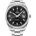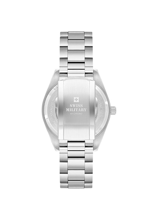 Мужские механические швейцарские часы с автоподзаводом Swiss Military by Chrono Automatic Collection SMA34110.01 — это элегантный мужской аксессуар, сочетающий швейцарское качество и классический дизайн. Корпус диаметром 40 мм и браслет выполнены из нержавеющей стали, придающим изделию изысканный вид. Сапфировое стеклоСапфировое стеклоПрочный и надёжный материал из кристалла сапфира синтетического происхождения, характеризующийся особой твёрдостью и устойчивостью к царапинам и повреждениям. устойчивое к появлению царапин, обладающее высокой прозрачностью.  Стрелки и часовые метки покрыты люминесцентным составомЛюминесцентное покрытиеПозволяет считывать показания времени в темноте. Производители наносят на стрелки, часовые индексы, безель или поверхность циферблата светонакопительный состав, дающий холодное свечение., обеспечивая отличную читаемость в условиях низкой освещённости. Окошко даты находится в положении 3 часов. Браслет из нержавеющей стали с раскладной застёжкойРаскладная застёжкаТакой тип застёжки используется только на браслетах из металла. Она никогда не раскрывается полностью, происходит разделение на 2 и более частей. Раскладывающая застёжка снизит вероятность потери часов к минимуму. обеспечивает комфортное ношение и надёжную фиксацию на запястье. Водонепроницаемость до 10 ATM позволяет использовать часы при плавании и других водных активностях. Swiss Military — это идеальный выбор для мужчин, ценящих сочетание элегантности, функциональности и швейцарского качества.
