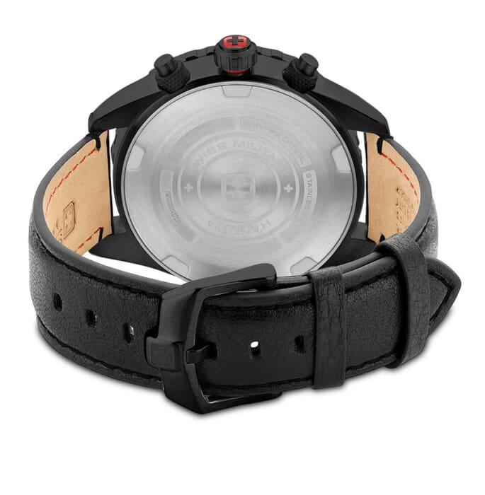 Мужские швейцарские часы Swiss Military Hanowa SMWGC0000331 – это элегантные часы, сочетающие в себе классический дизайн и современную функциональность. Корпус из нержавеющей стали диаметром 45 мм сбалансирован и элегантен. Сапфировое стеклоСапфировое стеклоПрочный и надёжный материал из кристалла сапфира синтетического происхождения, характеризующийся особой твёрдостью и устойчивостью к царапинам и повреждениям. с антибликовым покрытием защищает циферблат от царапин и обеспечивает отличную читаемость при любом освещении. Кожаный ремешок на стандартной застёжке идеально дополняют дизайн часов, обеспечивая комфортное ношение. Люминесцентное покрытиеЛюминесцентное покрытиеПозволяет считывать показания времени в темноте. Производители наносят на стрелки, часовые индексы, безель или поверхность циферблата светонакопительный состав, дающий холодное свечение. стрелок и меток позволит вам следить за временем даже в полной темноте. Вращающийся стальной безельБезельВнешний ободок, закрепляющий стекло. В спортивных часах так называется поворотное кольцо с делениями на циферблате, выполняет роль таймера – замеряет отрезки времени на шкале. Неподвижный безель – элемент декора. Однонаправленно вращающийся безель на дайверских часах позволяет фиксировать моменты погружения и выныривания на поверхность. с PVD-покрытиемPVDУльтратонкое покрытие наносится в технике вакуумного напыления, сочетает в себе нитрид титана особой прочности со слоем золота или оксида хрома. Несёт в себе декоративную или защитную функцию.. Часы оснащены центральной секундной стрелкой и окошком даты в положении «6 часов», что делает их функциональными для повседневного использования. Завинчивающаяся прозрачная задняя крышка, тахиметрТахиметрРазмеченная шкала, располагается на ободке или безеле часов. Тахиметр позволяет рассчитать скорость на определённом участке пути, расстояние измеряется в километрах или милях. по внешнему краю. Водонепроницаемость до 100 метров. Идеальный выбор для тех, кто ценит качество и долговечность.
