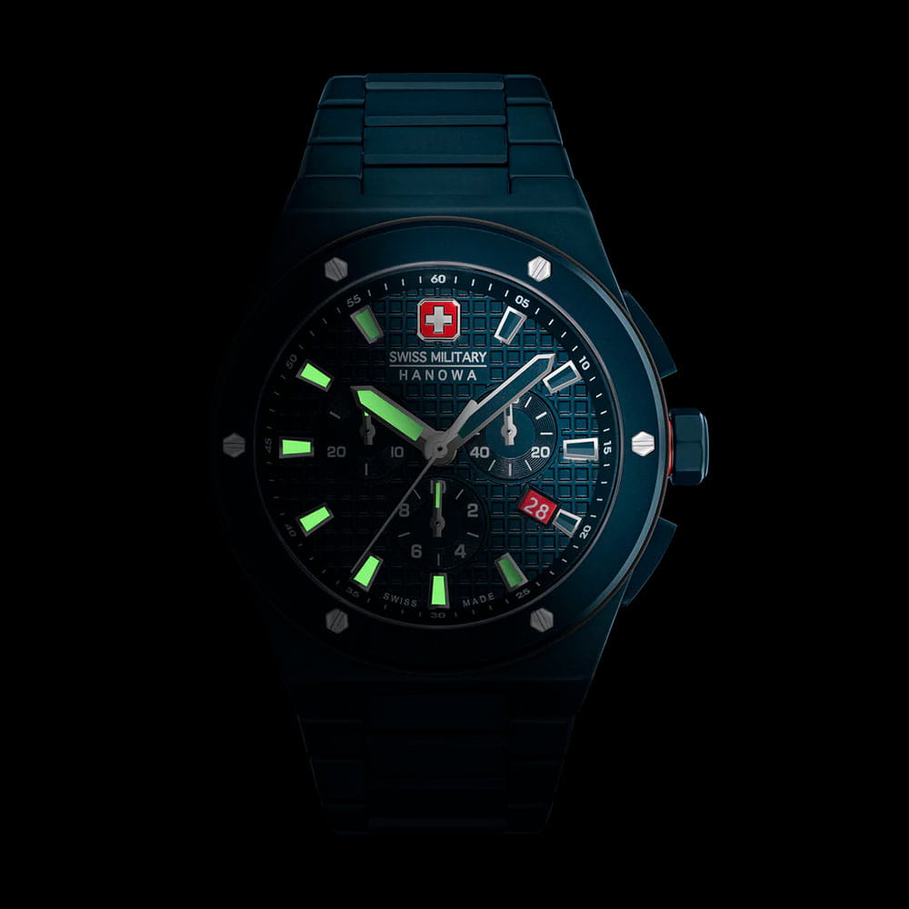 Мужские швейцарские часы-хронографХронографФункция позволяет измерять отрезки времени с особой точностью: часы, минуты, секунды. Верным признаком хронографа является наличие на циферблате 3 дополнительных окошек-счётчиков. Swiss Military Hanowa Thunderbolt Chrono SMWGI0002281, кварцевый механизм с высокой точностью. Сапфировое стеклоСапфировое стеклоПрочный и надёжный материал из кристалла сапфира синтетического происхождения, характеризующийся особой твёрдостью и устойчивостью к царапинам и повреждениям. устойчивое к появлению царапин, обладающее высокой прозрачностью. Класс водозащиты: 100 метров, позволит плавать, нырять и заниматься другими водными видами спорта. Корпус часов изготовлен из керамики. Керамический браслет с застежкой бабочкаЗастёжка "бабочка"Такой вид застёжки дополняется предохранителями, помогающими избежать случайного раскрытия браслета. Обладают изящным исполнением.