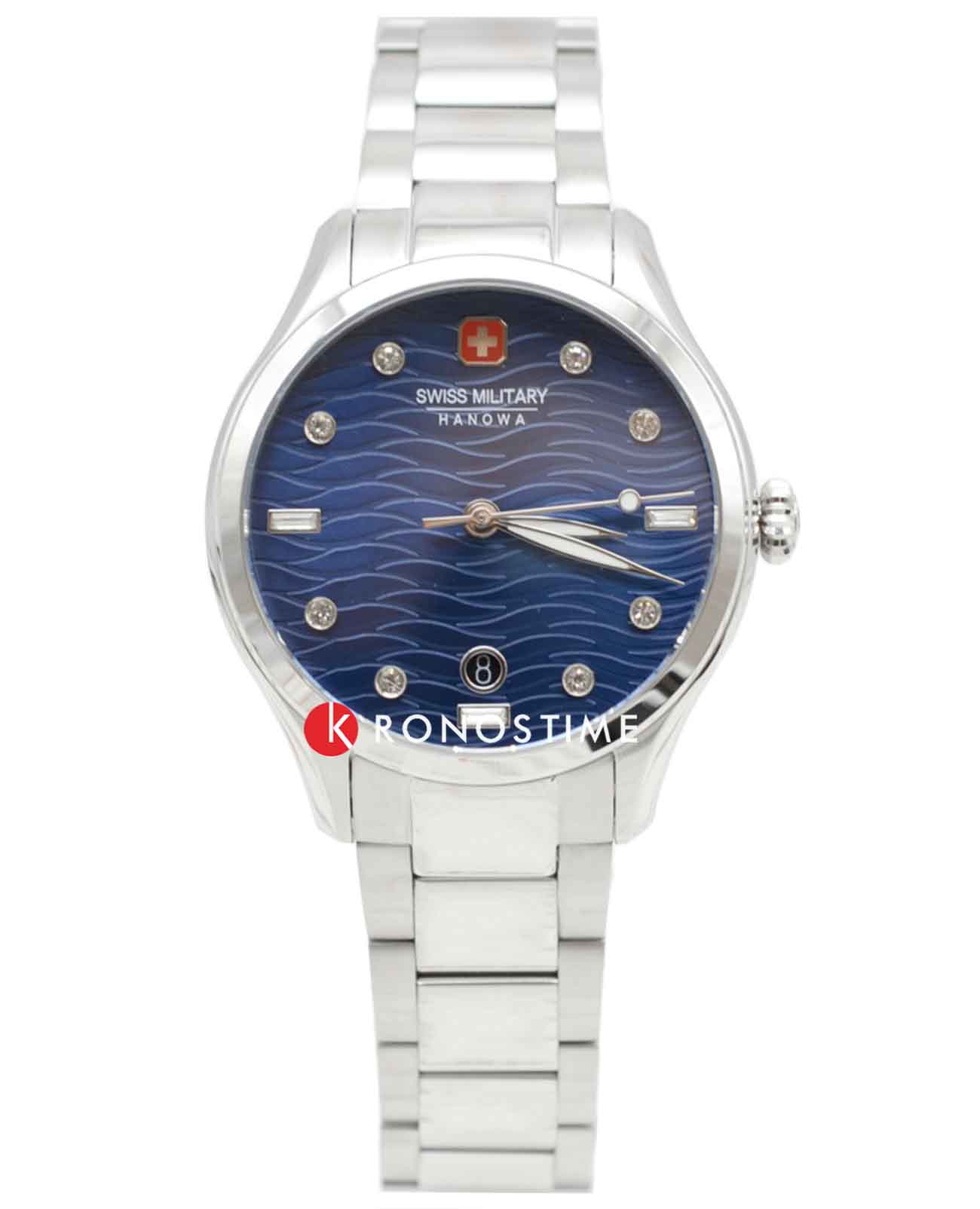 Женские швейцарские часы Swiss Military Hanowa Manta Lady SMWLH0005302, кварцевый механизм с высокой точностью. Сапфировое стеклоСапфировое стеклоПрочный и надёжный материал из кристалла сапфира синтетического происхождения, характеризующийся особой твёрдостью и устойчивостью к царапинам и повреждениям. устойчивое к появлению царапин, обладающее высокой прозрачностью. Класс водозащиты: 50 метров, позволит защитить корпус от случайных брызг или капель дождя. Корпус часов изготовлен из стали. Стальной браслет на раскладной застёжкеРаскладная застёжкаТакой тип застёжки используется только на браслетах из металла. Она никогда не раскрывается полностью, происходит разделение на 2 и более частей. Раскладывающая застёжка снизит вероятность потери часов к минимуму.. Окошко даты находится в положении 6 часов.