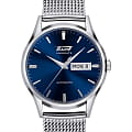 Мужские механические часы из коллекции Visodate обладают синим циферблатом со стальными стрелками, которые отлично выделяются на фоне и обеспечивают хорошую видимость показателей.