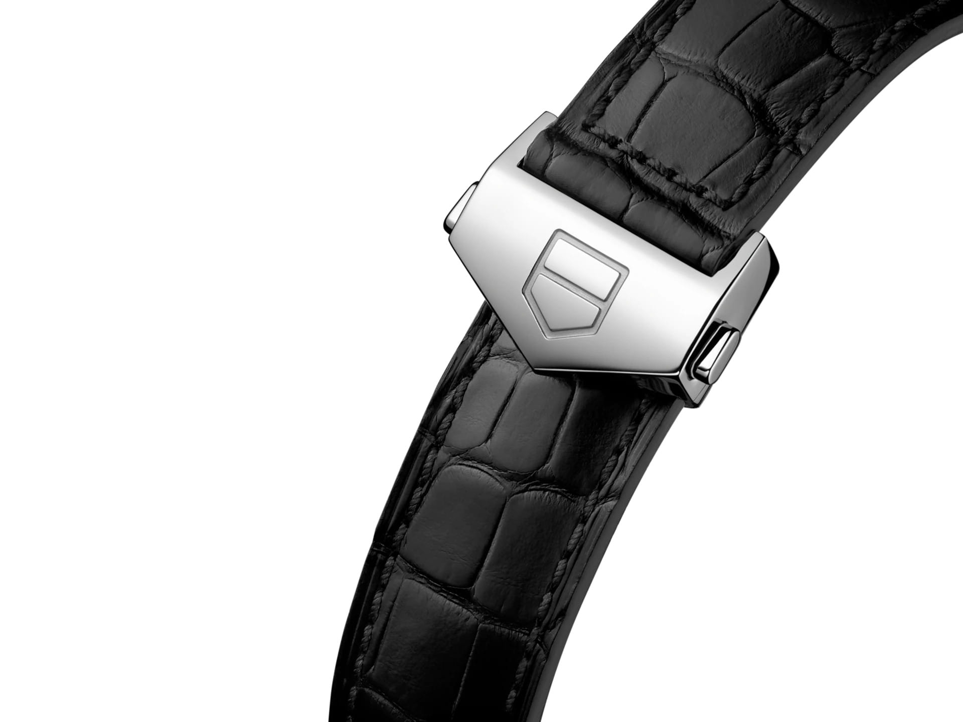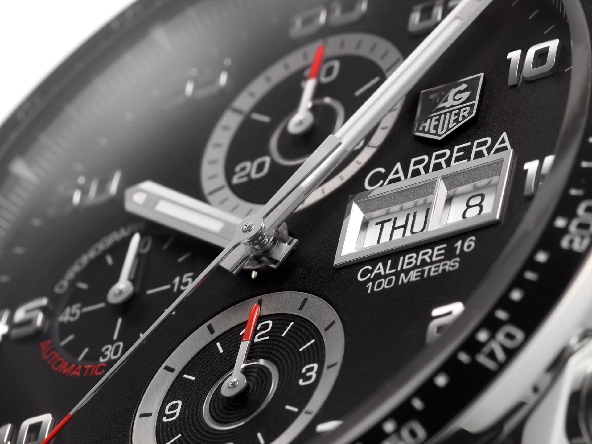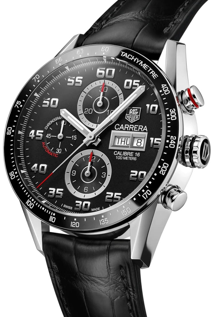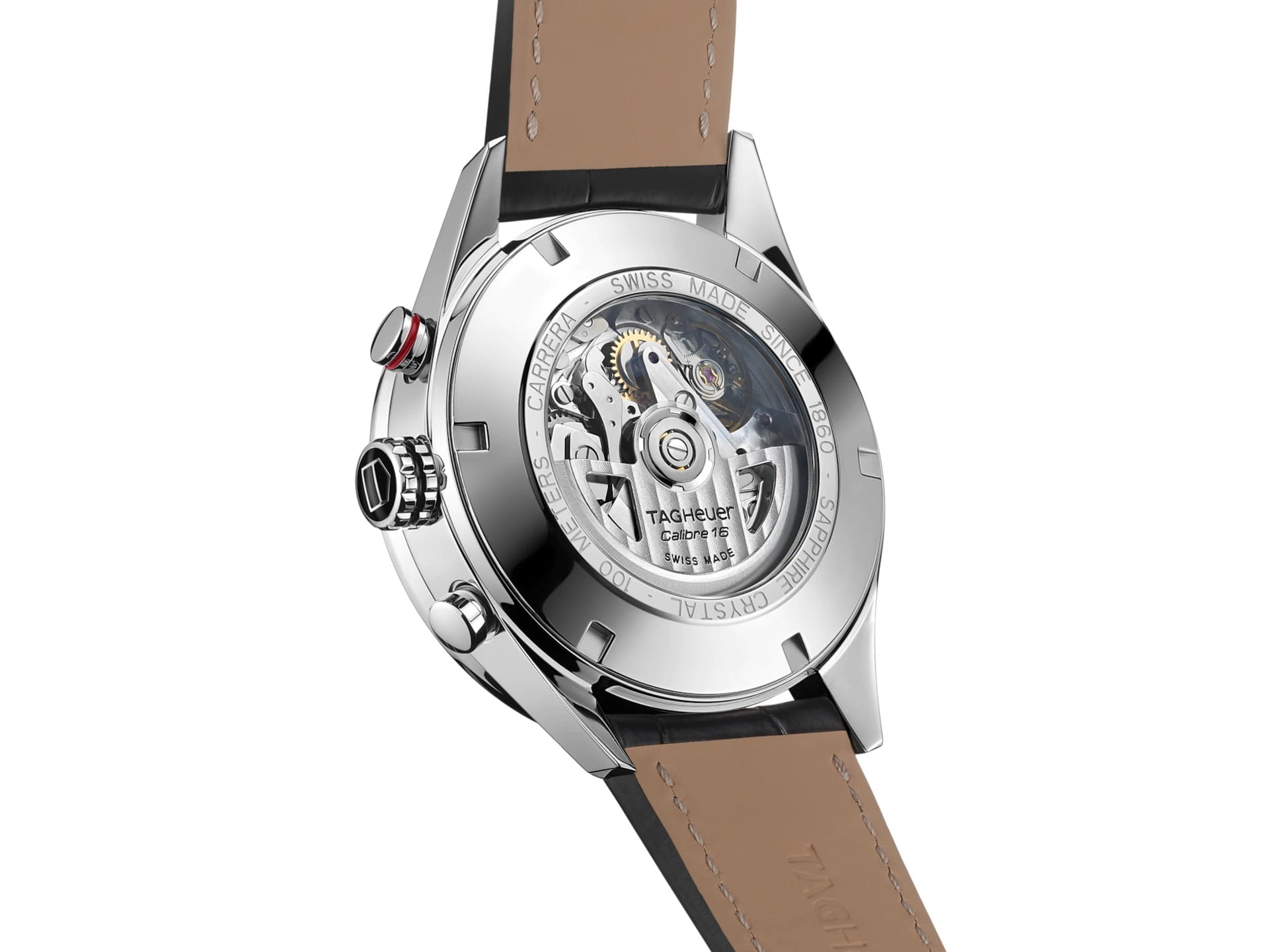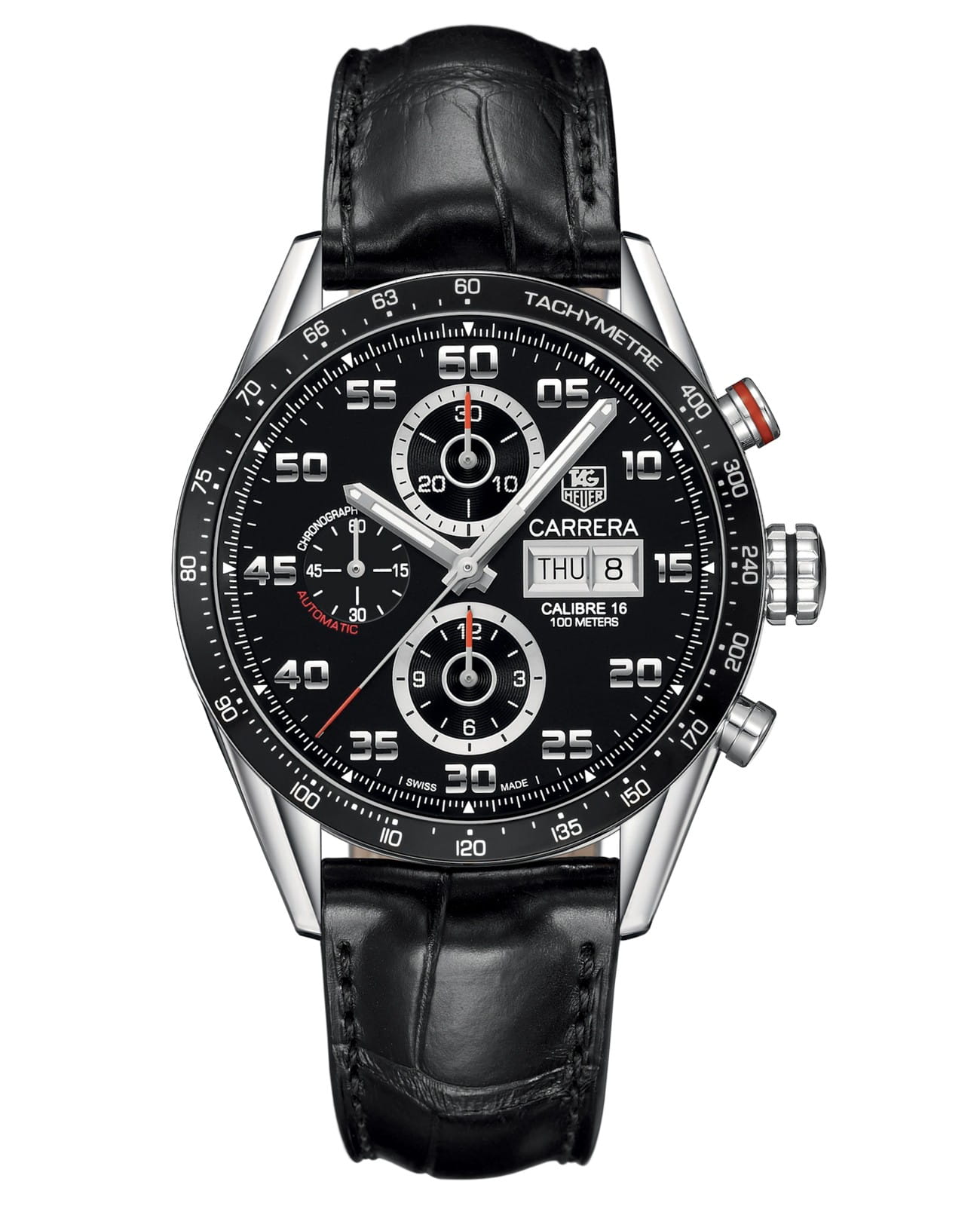 Автоматический хронограф с индикацией даты и дня недели. Модель отличается счетчиками в положениях «3 часа», «6 часов» и «9 часов», источником вдохновения для создания которых послужил мир автоспорта. Часы оснащены механизмом Calibre 16, который можно рассмотреть через заднюю крышку из сапфирового стекла, и дополнены черным ремешком из кожи аллигатора. TAG Heuer Carrera CV2A1R.FC6235, механический механизм (автоматический калибр) с высокой точностью. Сапфировое стекло устойчивое к появлению царапин, обладающее высокой прозрачностью. Класс водозащиты: 100 метров, позволит плавать, нырять и заниматься другими водными видами спорта. Корпус часов изготовлен из стали, цвета.