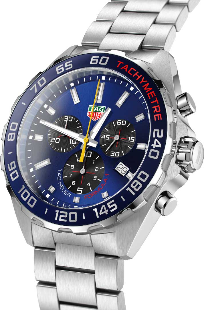 Мужские кварцевые часы TAG Heuer Formula 1 X Red Bull Racing CAZ101AK.BA0842 — это стильное сочетание элегантности и современного дизайна. Корпус из нержавеющей стали диаметром 43 мм идеально сбалансирован и элегантен. Сапфировое стеклоСапфировое стеклоПрочный и надёжный материал из кристалла сапфира синтетического происхождения, характеризующийся особой твёрдостью и устойчивостью к царапинам и повреждениям. с антибликовым покрытием защищает циферблат от царапин и обеспечивает отличную читаемость при любом освещении. Стальной браслет на раскладной застёжкеРаскладная застёжкаТакой тип застёжки используется только на браслетах из металла. Она никогда не раскрывается полностью, происходит разделение на 2 и более частей. Раскладывающая застёжка снизит вероятность потери часов к минимуму. идеально дополняют дизайн часов, обеспечивая комфортное ношение. Стрелки и метки на циферблате имеют люминесцентное покрытиеЛюминесцентное покрытиеПозволяет считывать показания времени в темноте. Производители наносят на стрелки, часовые индексы, безель или поверхность циферблата светонакопительный состав, дающий холодное свечение. позволяющее легко определять время даже в темноте. БезельБезельВнешний ободок, закрепляющий стекло. В спортивных часах так называется поворотное кольцо с делениями на циферблате, выполняет роль таймера – замеряет отрезки времени на шкале. Неподвижный безель – элемент декора. Однонаправленно вращающийся безель на дайверских часах позволяет фиксировать моменты погружения и выныривания на поверхность. тахиметраТахиметрРазмеченная шкала, располагается на ободке или безеле часов. Тахиметр позволяет рассчитать скорость на определённом участке пути, расстояние измеряется в километрах или милях. с алюминиевыми вставками подчёркивает спортивное наследие часов. Часы обладают впечатляющей водонепроницаемостью до 20 бар (200 метров), что делает их идеальными для плавания, ныряния и погружений с аквалангом. ХронографХронографФункция позволяет измерять отрезки времени с особой точностью: часы, минуты, секунды. Верным признаком хронографа является наличие на циферблате 3 дополнительных окошек-счётчиков. обеспечивает точное измерение времени на каждом круге. Прочная конструкция часов и высокопроизводительный механизм делают их идеальным спутником для любителей гонок.