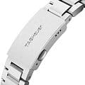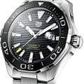 Автоматические мужские часы TAG Heuer Aquaracer Calibre 5 Automatic WAY201A.BA0927, механический механизм (автоматический калибр) с высокой точностью. Сапфировое стеклоСапфировое стеклоПрочный и надёжный материал из кристалла сапфира синтетического происхождения, характеризующийся особой твёрдостью и устойчивостью к царапинам и повреждениям. устойчивое к появлению царапин, обладающее высокой прозрачностью. Класс водозащиты: 300 метров, позволит плавать, нырять и заниматься другими водными видами спорта. Корпус часов изготовлен из стали. Стальной браслет на раскладной застёжкеРаскладная застёжкаТакой тип застёжки используется только на браслетах из металла. Она никогда не раскрывается полностью, происходит разделение на 2 и более частей. Раскладывающая застёжка снизит вероятность потери часов к минимуму.. В механизме 25 или 26 камней в зависимости от исполнения, частота 28800 полуколебаний в час. Запас хода 38 часов. Окошко даты с увеличительным стеклом. Керамический безельБезельВнешний ободок, закрепляющий стекло. В спортивных часах так называется поворотное кольцо с делениями на циферблате, выполняет роль таймера – замеряет отрезки времени на шкале. Неподвижный безель – элемент декора. Однонаправленно вращающийся безель на дайверских часах позволяет фиксировать моменты погружения и выныривания на поверхность. вращается в одном направлении. Завинчивающаяся заводная головка с защитой. Завинчивающаяся задняя крышка. Накладные полированные граненые индексы с родиевым покрытием. Стрелки и метки с люминесцентным покрытиемЛюминесцентное покрытиеПозволяет считывать показания времени в темноте. Производители наносят на стрелки, часовые индексы, безель или поверхность циферблата светонакопительный состав, дающий холодное свечение..