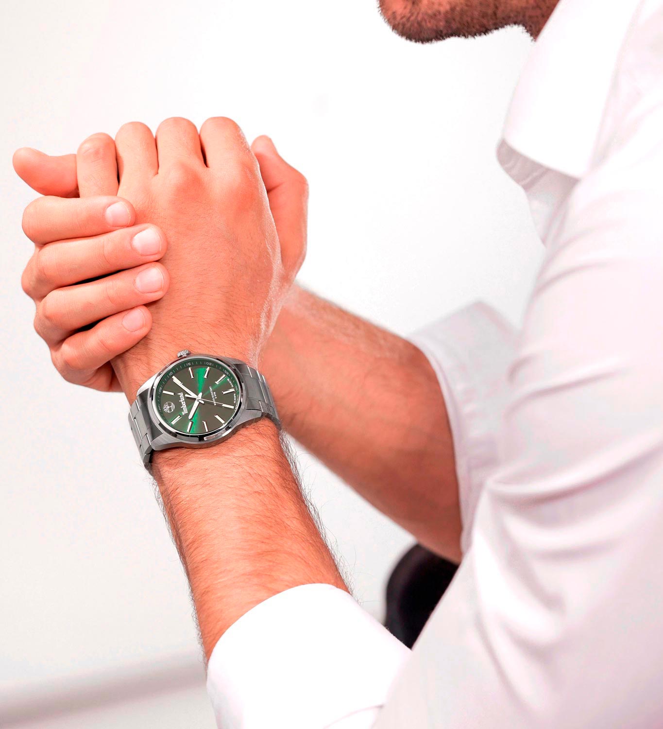 Американские мужские часы Timberland Northbridge TDWGG0010806 имеют кварцевый механизм с высокой точностью. Класс водозащиты: 50 метров, позволит защитить корпус от случайных брызг или капель дождя. Прочное минеральное стеклоМинеральное стеклоМинеральное стекло представляет собой искусственно выращенный минерал кварца. Такое стекло отличается особой устойчивостью к повреждениям и царапинам. Уступает по некоторым качествам сапфировому стеклу.. Стрелки и метки циферблата с люминесцентным покрытиемЛюминесцентное покрытиеПозволяет считывать показания времени в темноте. Производители наносят на стрелки, часовые индексы, безель или поверхность циферблата светонакопительный состав, дающий холодное свечение.. Корпус часов изготовлен из стали. Браслет с раскладной застёжкойРаскладная застёжкаТакой тип застёжки используется только на браслетах из металла. Она никогда не раскрывается полностью, происходит разделение на 2 и более частей. Раскладывающая застёжка снизит вероятность потери часов к минимуму..