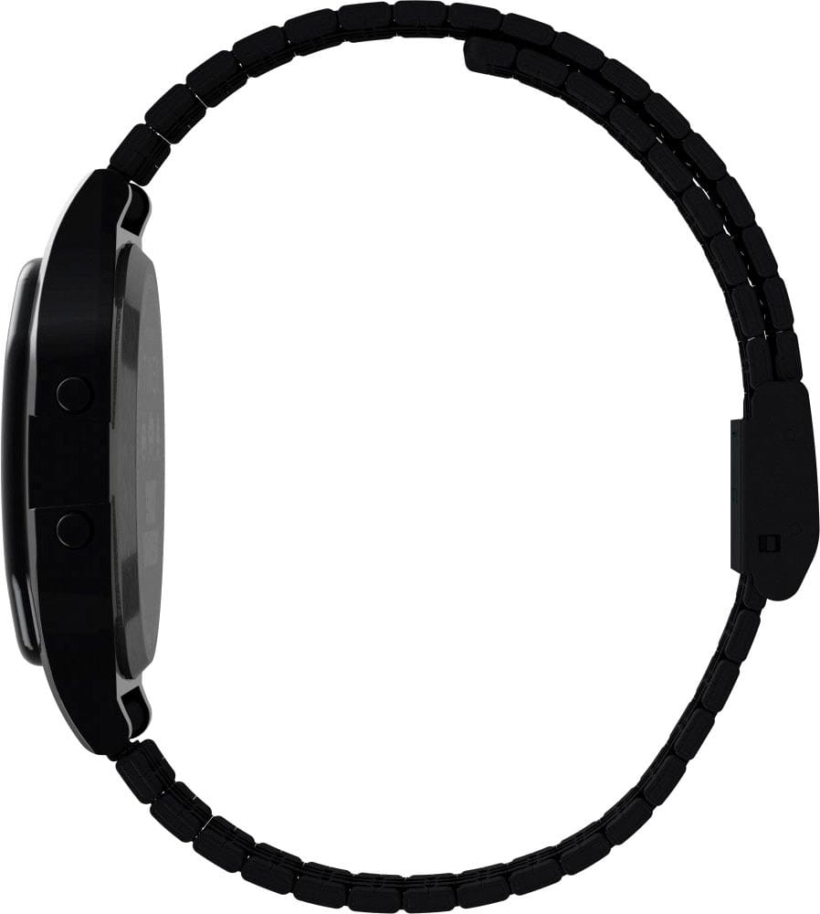 Часы Timex TW2V30200 представляют собой современный электронный аксессуар с уникальным дизайном, вдохновленным классической видеоигрой Space Invaders. Эти часы, произведенные в США, оснащены кварцевым механизмом и предназначены для активного образа жизни. Корпус часов выполнен из латуни с черным PVDPVDУльтратонкое покрытие наносится в технике вакуумного напыления, сочетает в себе нитрид титана особой прочности со слоем золота или оксида хрома. Несёт в себе декоративную или защитную функцию. покрытием, а акриловое пластиковое стекло защищает зеленый ЖК-циферблат, на котором отображается время, дата, день недели и месяц. Специальная серия часов украшена аутентичной пиксельной графикой, изображающей пришельцев и лазерные шутеры, что придает им оригинальный вид. Одной из ключевых особенностей является фирменная подсветка Indiglo, которая обеспечивает удобное считывание информации в темное время суток. Часы также оснащены электронным SPLIT-хронографомХронографФункция позволяет измерять отрезки времени с особой точностью: часы, минуты, секунды. Верным признаком хронографа является наличие на циферблате 3 дополнительных окошек-счётчиков. с точностью до 1/100 секунды, с секундомеромСекундомерСекундоме́р — прибор, способный измерять интервалы времени с точностью до долей секунды. и функцией ежедневного будильникаБудильникБуди́льник — часы, в заданный момент времени подающие звуковой, световой и/или в редких случаях другой сигнал., что делает их функциональным аксессуаром для повседневного использования. Стальной браслет с черным PVDPVDУльтратонкое покрытие наносится в технике вакуумного напыления, сочетает в себе нитрид титана особой прочности со слоем золота или оксида хрома. Несёт в себе декоративную или защитную функцию. покрытием и раскладным замкомРаскладной замокДанный вариант застежки используется только на часах с металлическим браслетом. Отличительная особенность такого крепления в том, что длина браслета становится универсальной и вы можете самостоятельно отрегулировать нужный вам размер – застежка просто двигается по браслету часов. обеспечивает надежную фиксацию на запястье и комфорт в ношении. Габаритные размеры часов составляют 34x29 мм, толщина — 10 мм, а ширина браслета — 18 мм. Водозащита 30WR обеспечивает защиту от случайных брызг. Сзади корпус украшен гравировкой и крепится на четырех винтах, что подчеркивает внимание к деталям и долговечность. Часы поставляются в специальной упаковке, что делает их отличным выбором для подарка или личного использования.