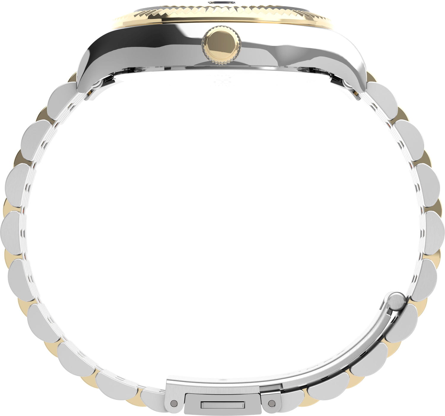Часы Timex TW2V31600 из коллекции Waterbury Legacy — это элегантный женский аксессуар, который объединяет классический дизайн и современные технологии. Корпус диаметром 34 мм и браслет выполнены из нержавеющей стали с двухцветным серебристо-золотистым PVD-покрытиемPVDУльтратонкое покрытие наносится в технике вакуумного напыления, сочетает в себе нитрид титана особой прочности со слоем золота или оксида хрома. Несёт в себе декоративную или защитную функцию., что придаёт часам утончённый вид. Синий циферблат с золотистыми стрелками и индексами защищён минеральным стекломМинеральное стеклоМинеральное стекло представляет собой искусственно выращенный минерал кварца. Такое стекло отличается особой устойчивостью к повреждениям и царапинам. Уступает по некоторым качествам сапфировому стеклу., устойчивым к царапинам.
