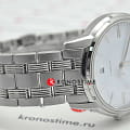 Лаконичный белый циферблат одинаково хорошо будет смотреться как со строгим пиджаком, так и с одеждой для прогулок. Серебристые часовые метки и стрелки чётко выделяются на светлом фоне, показания времени читаются без затруднений. Автоматический калибр ETA 2824-2 сохраняет запас хода на 38 часов, такие часы заводятся от движений руки носителя. Сапфировое стекло противостоит возникновению царапин на поверхности. Водонепроницаемость 3 бар. Индикация даты, дня недели. Габариты: 39 x 39,7 x 9,5 мм.