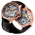 Это аксессуар для тех, кто действительно любит часовое искусство и разбирается в нём, вся их работа выставлена напоказ - перед вами часы-скелетон. Всё до мельчайших подробностей просматривается через открытый циферблат и прозрачную заднюю крышку, на наших глазах происходит неторопливое движение швейцарского механического калибра ETA 6497 с запасом хода 46 часов. Модель дополнена ремешком из натуральной кожи, что придаёт особый стиль. Корпус имеет PVD-покрытиеPVDУльтратонкое покрытие наносится в технике вакуумного напыления, сочетает в себе нитрид титана особой прочности со слоем золота или оксида хрома. Несёт в себе декоративную или защитную функцию. в цвете розового золота. Сапфировое стекло защищает механизм от повреждений и устойчиво к царапинам. Габариты: 42 x 42 x 11,1 мм.