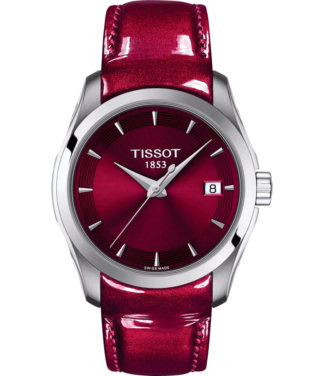 Сочный бордовый оттенок с вишнёвыми нотками сразу бросается в глаза, женские наручные часы из коллекции Tissot Couturier сделают вас королевой вечера.