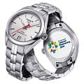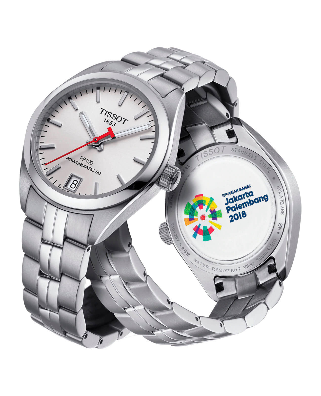 Наручные часы Asian Games Edition имеют отличительную заднюю крышку с гравировкой-эмблемой игр, нанесённой методом шелкографии. Аксессуар выполнен из стали 316L, известной своими противокоррозионными свойствами. Внутри корпуса заключён автоматический калибр Powermatic 80Powermatic 80Эксклюзивный калибр от швейцарской компании ETA с увеличенным запасом хода до 80 часов за счёт удлинённой заводной пружины. Характеризуется улучшенной системой спуска со сниженным трением. с 80-часовым запасом хода. Сапфировое стекло невозможно поцарапать. Водозащита 100 метров. Люминесцентное покрытиеЛюминесцентное покрытиеПозволяет считывать показания времени в темноте. Производители наносят на стрелки, часовые индексы, безель или поверхность циферблата светонакопительный состав, дающий холодное свечение. стрелок. . Отображение числа. Габариты: 33 x 33 x 9,8 мм.