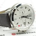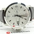 Дизайнеры выбрали для модели суженный безельБезельВнешний ободок, закрепляющий стекло. В спортивных часах так называется поворотное кольцо с делениями на циферблате, выполняет роль таймера – замеряет отрезки времени на шкале. Неподвижный безель – элемент декора. Однонаправленно вращающийся безель на дайверских часах позволяет фиксировать моменты погружения и выныривания на поверхность., такая особенность зрительно увеличивает циферблат и ускоряет процесс считывания показателей. Массивный стальной корпус сочетается с ремешком из натуральной коровьей кожи, поверхность имитирует рисунок кожи крокодила. Метки и стрелки имеют люминесцентное покрытиеЛюминесцентное покрытиеПозволяет считывать показания времени в темноте. Производители наносят на стрелки, часовые индексы, безель или поверхность циферблата светонакопительный состав, дающий холодное свечение., что позволяет использовать часы в темноте. Швейцарский калибр ETA C01.211 с запасом хода 45 часов. Сапфировое стекло устойчиво к возникновению царапин. Водонепроницаемость до 20 бар. . Секундомер, апертура даты. Габариты: 43 x 44 x 16,3 мм.