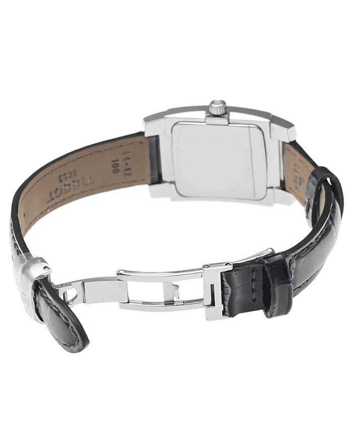 TISSOT T0733101611600 T-Trend T10 Quartz - женские кварцевые наручные часы Корпус этих часов небольшого размера (254 мм) и выполнен из нержавеющей стали L316 металлического цвета Модель TISSOT T0733101611600 T-Trend T10 Quartz имеет устойчивое к царапинам сапфировое стекло, ремешок из натуральной кожи черного цвета, белый циферблат Циферблат украшен 6 бриллиантами Калибр механизма: ETA F03111 Класс водозащиты: 30 м / 3 АТМ (защита от брызг и случайных капель) Дополнительные функции и особенности: нет Полная заводская комплектация TISSOT: оригинальные часы, фирменная коробка, инструкция, сервисная книжка, роман о часовой фабрике, миникаталог, замшевый фирменный чехол черного цвета для хранения и/или переноски часов, кассовый и товарный чеки Международная гарантия 2 года Производство и сборка: Швейцария