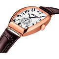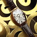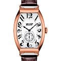 Наручные часы с ручным заводом выполнены в ретро-стиле, они отдают дань прошлому и идеально подходят в качестве дополнения к строгому деловому костюму. Стальной корпус с PVD-покрытиемPVDУльтратонкое покрытие наносится в технике вакуумного напыления, сочетает в себе нитрид титана особой прочности со слоем золота или оксида хрома. Несёт в себе декоративную или защитную функцию. цвета розового золота имеет оригинальную форму в виде бочонка. Стильно выглядит отдельный миниатюрный счётчик секунд. Механизм ETA 7001. Минеральное стекло с антибликовой поверхностью. . Коричневый ремешок из натуральной кожи. Габариты: 42,45 x 31,1 x 10,7 мм.