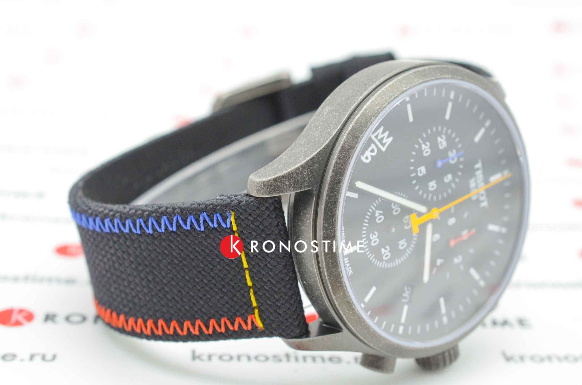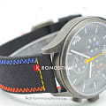 Брендовая модель станет лучшим дополнением к повседневному образу, стильно смотрится лаконичный чёрный циферблат с яркими стрелками. Плотный тканевый ремешок дарует лёгкость и обеспечивает комфортное ношение. Высокая точность хода достигается благодаря кварцевому механизму ETA G10.212. Сапфировое стекло устойчиво к возникновению царапин. Водонепроницаемость при давлении 10 бар. Чёрное PVD-покрытиеPVDУльтратонкое покрытие наносится в технике вакуумного напыления, сочетает в себе нитрид титана особой прочности со слоем золота или оксида хрома. Несёт в себе декоративную или защитную функцию. корпуса. Секундомер, хронографХронографФункция позволяет измерять отрезки времени с особой точностью: часы, минуты, секунды. Верным признаком хронографа является наличие на циферблате 3 дополнительных окошек-счётчиков., апертура даты. Габариты: 45 x 45 x 11 мм.