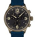 Для классического хронографаХронографФункция позволяет измерять отрезки времени с особой точностью: часы, минуты, секунды. Верным признаком хронографа является наличие на циферблате 3 дополнительных окошек-счётчиков. было выбрано чёрное исполнение, присутствуют контрастные индексы и стрелки. Наручные часы имеют тканевый ремешок NATO синего цвета, обеспечивающий невероятный комфорт при ношении. Высокоточный кварцевый механизм ETA G10.212. Люминесцентная подсветкаЛюминесцентное покрытиеПозволяет считывать показания времени в темноте. Производители наносят на стрелки, часовые индексы, безель или поверхность циферблата светонакопительный состав, дающий холодное свечение.. Цветное износоустойчивое PVD-покрытиеPVDУльтратонкое покрытие наносится в технике вакуумного напыления, сочетает в себе нитрид титана особой прочности со слоем золота или оксида хрома. Несёт в себе декоративную или защитную функцию. корпуса. Сапфировое стекло. Водонепроницаемость до 10 бар. Окошко даты, секундомер. Габариты: 45 x 45 x 11 мм.