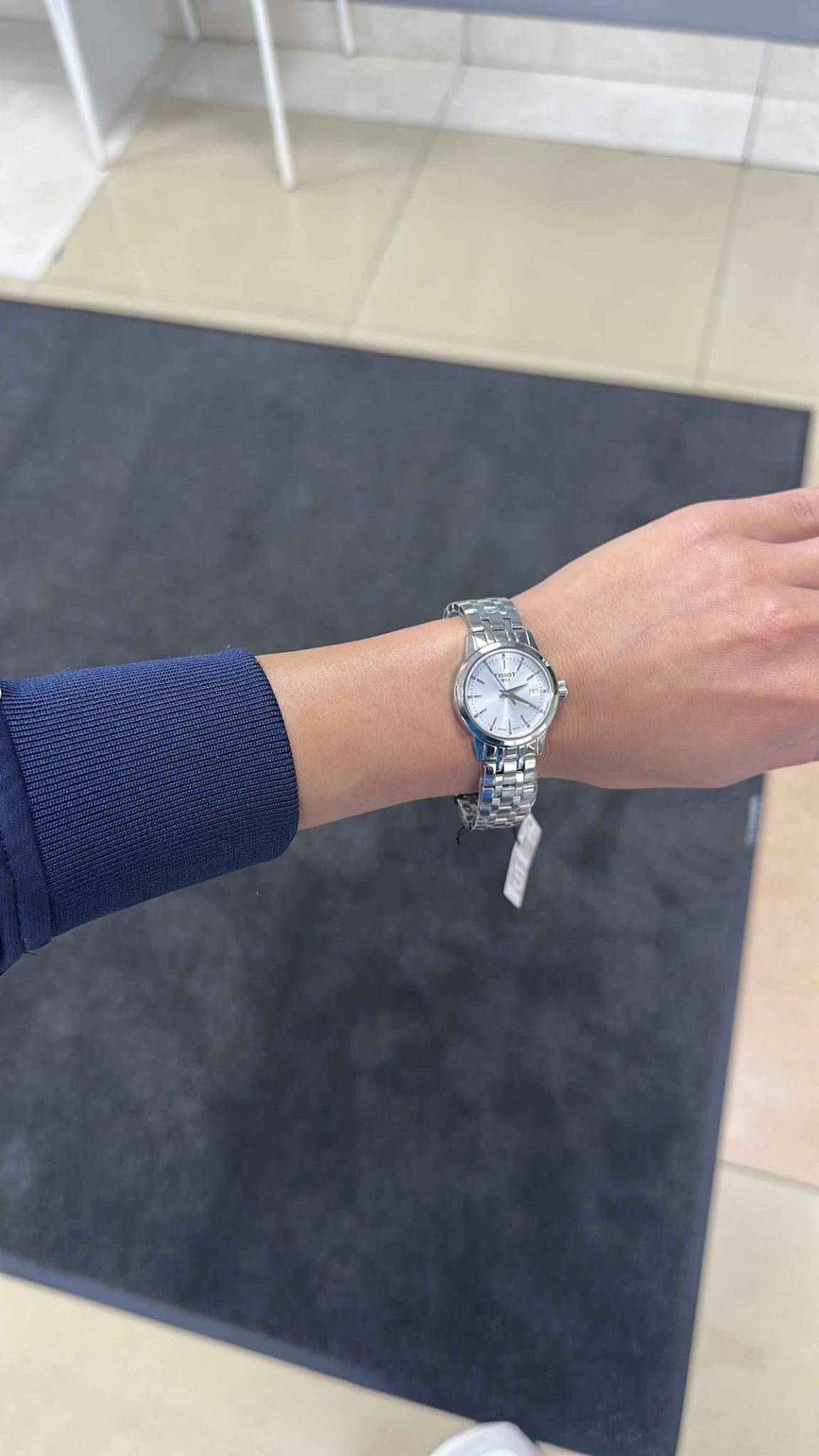 Модель представлена в минималистичном исполнении. Точность хода швейцарского кварцевого механизма ETA F04.115 составляет +/- 20 секунд в месяц. Сапфировое стеклоСапфировое стеклоПрочный и надёжный материал из кристалла сапфира синтетического происхождения, характеризующийся особой твёрдостью и устойчивостью к царапинам и повреждениям. устойчиво к появлению царапин. Корпус и браслет изготовлены из нержавеющей стали 316L. Часы сохраняют водостойкость при давлении 5 бар. Застёжка «бабочка» с кнопкамиЗастёжка "бабочка"Такой вид застёжки дополняется предохранителями, помогающими избежать случайного раскрытия браслета. Обладают изящным исполнением. никогда не расстегнётся случайным образом. Функции: календарь, EOLEOLПредставляет собой систему, уведомляющую владельца часов о необходимости замены элемента питания. За 2 недели до полного разряда батарейки секундная стрелка перестаёт ходить чётко и начинает перепрыгивать на 3-4 деления..