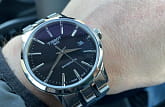 Хороший размер, приятный дизайн. Очень точные часы. Сапфировое стекло вообще выше всяких похвал. Стальной удобны браслет. Водозащита до 50 метров позволит принимать душ или умываться, не снимая часов. Механизм — автоподзавод.
