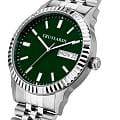 Итальянские мужские часы Trussardi T-Bent R2453141010 - это стильный мужской аксессуар, который сочетает элегантный дизайн и практичность. Корпус выполнен из нержавеющей стали, что обеспечивает долговечность и утончённый внешний вид. Надежное минеральное стеклоМинеральное стеклоМинеральное стекло представляет собой искусственно выращенный минерал кварца. Такое стекло отличается особой устойчивостью к повреждениям и царапинам. Уступает по некоторым качествам сапфировому стеклу. защищает циферблат от царапин и обеспечивает долговечность. Модель оснащена кварцевым механизмом, обеспечивающим высокую точность хода. Браслет из нержавеющей стали с раскладной застёжкойРаскладная застёжкаТакой тип застёжки используется только на браслетах из металла. Она никогда не раскрывается полностью, происходит разделение на 2 и более частей. Раскладывающая застёжка снизит вероятность потери часов к минимуму. обеспечивает комфортное ношение. Водозащита 50 метров позволит защитить корпус от случайных брызг или капель дождя.  Окошки даты и дня недели находятся в положении 3 часа. Стрелки и метки оснащены люминесцентным покрытиемЛюминесцентное покрытиеПозволяет считывать показания времени в темноте. Производители наносят на стрелки, часовые индексы, безель или поверхность циферблата светонакопительный состав, дающий холодное свечение., обеспечивающим отличную видимость даже при слабом освещении. Эта модель – отличный выбор для тех, кто ищет сочетание стиля, качества и функциональности. Часы станут не только полезным аксессуаром, но и выразительным элементом вашего имиджа.