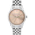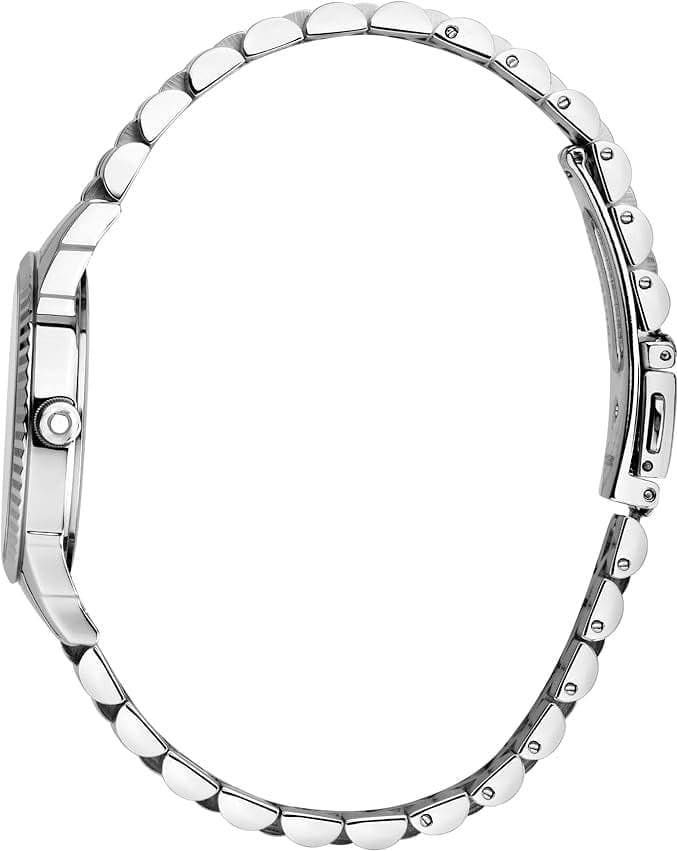 Итальянские женские часы Trussardi T-Bent R2453144512 - это стильный женский аксессуар, который сочетает элегантный дизайн и практичность. Корпус выполнен из нержавеющей стали, что обеспечивает долговечность и утончённый внешний вид. БезельБезельВнешний ободок, закрепляющий стекло. В спортивных часах так называется поворотное кольцо с делениями на циферблате, выполняет роль таймера – замеряет отрезки времени на шкале. Неподвижный безель – элемент декора. Однонаправленно вращающийся безель на дайверских часах позволяет фиксировать моменты погружения и выныривания на поверхность. с алмазной гранью. Надежное минеральное стеклоМинеральное стеклоМинеральное стекло представляет собой искусственно выращенный минерал кварца. Такое стекло отличается особой устойчивостью к повреждениям и царапинам. Уступает по некоторым качествам сапфировому стеклу. защищает циферблат от царапин и обеспечивает долговечность. Модель оснащена кварцевым механизмом, обеспечивающим высокую точность хода. Браслет из нержавеющей стали на раскладной застёжкеРаскладная застёжкаТакой тип застёжки используется только на браслетах из металла. Она никогда не раскрывается полностью, происходит разделение на 2 и более частей. Раскладывающая застёжка снизит вероятность потери часов к минимуму. обеспечивает комфортное ношение. Водозащита 50 метров позволит защитить корпус от случайных брызг или капель дождя. Эта модель – отличный выбор для тех, кто ищет сочетание стиля, качества и функциональности. Часы станут не только полезным аксессуаром, но и выразительным элементом вашего имиджа.