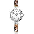 УЧЗ Flora 1704F-4 — модель с выразительными декоративными акцентами и художественной отделкой. Корпус и браслет выполнены из латуни с IP-покрытиемIP-покрытиеМетод ионного напыления. Демонстрирует повышенную устойчивость к истиранию, окислению и химическим веществам. Под воздействием высокого давления и температуры около 1500°C молекулы металла надёжно соединяются с частицами корпуса часов., обеспечивающим защиту от износа и стойкость цвета. Уникальный браслет с ювелирной застёжкой украшен вставками в технике финифти. Каждая финифтиевая вставка выполнена художником-эмальером вручную. Циферблат с арабскими цифрами и лаконичными стрелками удобен для считывания времени. За точность хода отвечает кварцевый механизм. Циферблат защищён минеральным стекломМинеральное стеклоМинеральное стекло представляет собой искусственно выращенный минерал кварца. Такое стекло отличается особой устойчивостью к повреждениям и царапинам. Уступает по некоторым качествам сапфировому стеклу.. Водозащита 3 ATM рассчитана на брызги и дождь.