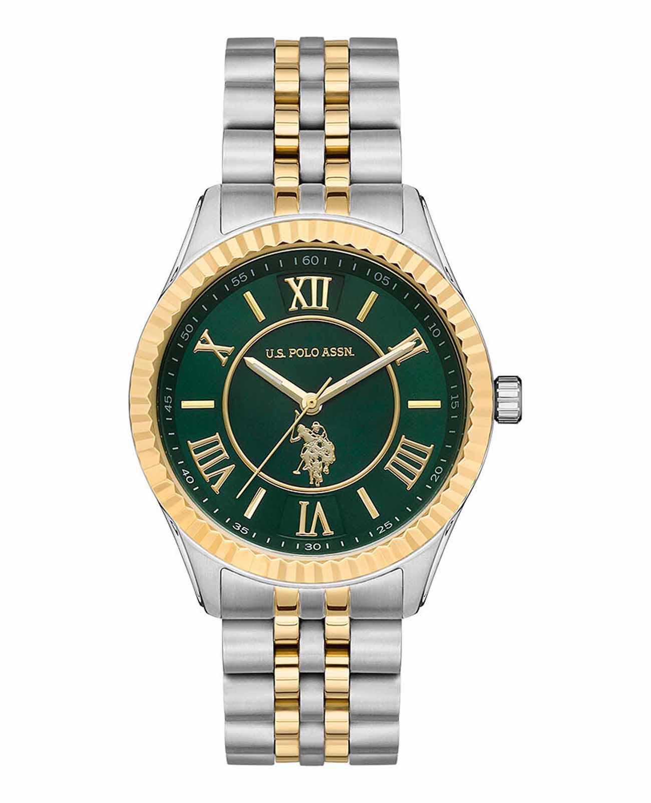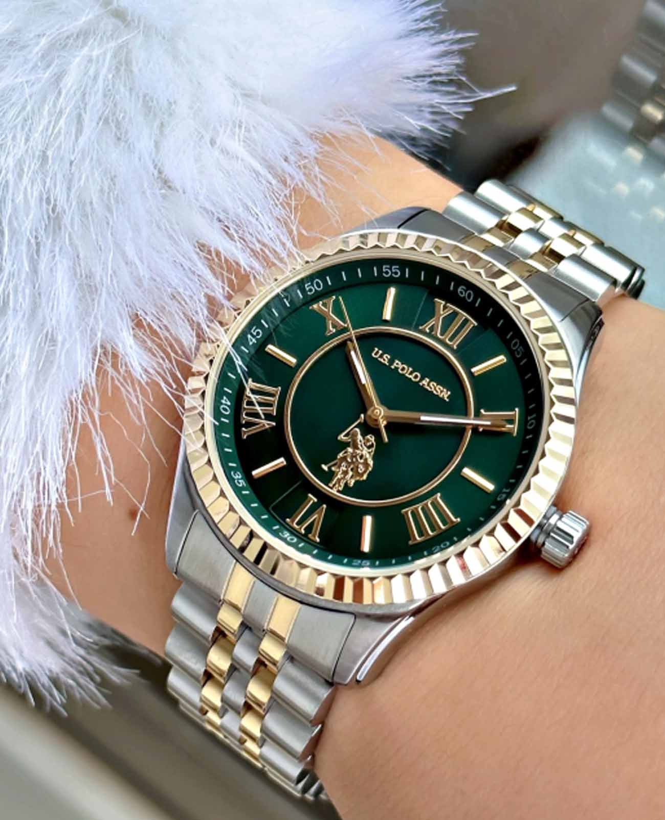 Женские часы U.S. Polo Assn Stile USPA2028-08, кварцевый механизм с высокой точностью. Минеральное стеклоМинеральное стеклоМинеральное стекло представляет собой искусственно выращенный минерал кварца. Такое стекло отличается особой устойчивостью к повреждениям и царапинам. Уступает по некоторым качествам сапфировому стеклу. устойчивое к появлению царапин, обладающее высокой прозрачностью. Корпус часов изготовлен из нержавеющей стали. БезельБезельВнешний ободок, закрепляющий стекло. В спортивных часах так называется поворотное кольцо с делениями на циферблате, выполняет роль таймера – замеряет отрезки времени на шкале. Неподвижный безель – элемент декора. Однонаправленно вращающийся безель на дайверских часах позволяет фиксировать моменты погружения и выныривания на поверхность. с IP-покрытиемIP-покрытиеМетод ионного напыления. Демонстрирует повышенную устойчивость к истиранию, окислению и химическим веществам. Под воздействием высокого давления и температуры около 1500°C молекулы металла надёжно соединяются с частицами корпуса часов.. Стрелки с люминесцентным покрытиемЛюминесцентное покрытиеПозволяет считывать показания времени в темноте. Производители наносят на стрелки, часовые индексы, безель или поверхность циферблата светонакопительный состав, дающий холодное свечение.. Класс водозащиты: 50 метров, позволит защитить корпус от случайных брызг или капель дождя. Стальной браслет с частичным IP-покрытиемIP-покрытиеМетод ионного напыления. Демонстрирует повышенную устойчивость к истиранию, окислению и химическим веществам. Под воздействием высокого давления и температуры около 1500°C молекулы металла надёжно соединяются с частицами корпуса часов. на раскладной застёжкеРаскладная застёжкаТакой тип застёжки используется только на браслетах из металла. Она никогда не раскрывается полностью, происходит разделение на 2 и более частей. Раскладывающая застёжка снизит вероятность потери часов к минимуму..