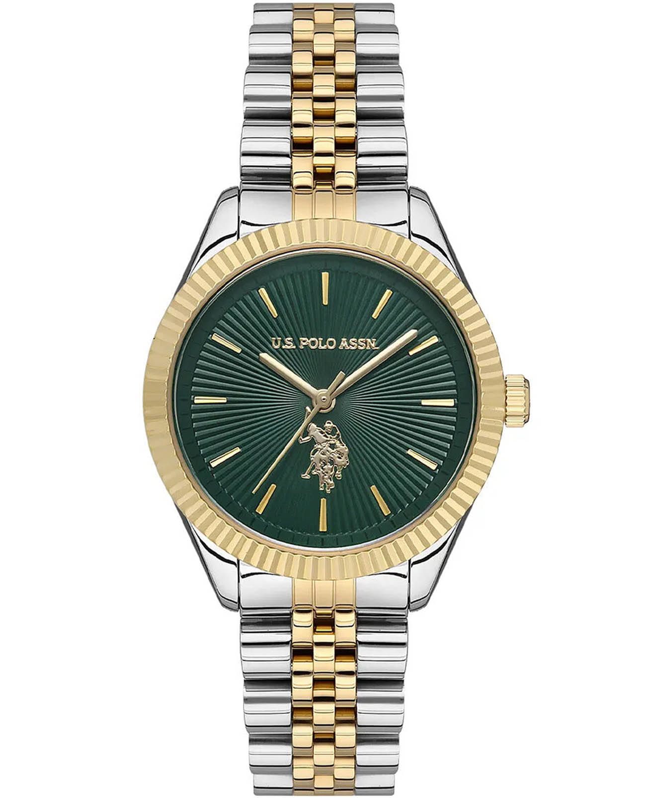 Женские элегантные часы U.S. Polo Assn. Stile USPA2045-04, кварцевый механизм с высокой точностью. Минеральное стеклоМинеральное стеклоМинеральное стекло представляет собой искусственно выращенный минерал кварца. Такое стекло отличается особой устойчивостью к повреждениям и царапинам. Уступает по некоторым качествам сапфировому стеклу. устойчивое к появлению царапин, обладающее высокой прозрачностью. Изысканный корпус изготовлен из нержавеющей стали, а безельБезельВнешний ободок, закрепляющий стекло. В спортивных часах так называется поворотное кольцо с делениями на циферблате, выполняет роль таймера – замеряет отрезки времени на шкале. Неподвижный безель – элемент декора. Однонаправленно вращающийся безель на дайверских часах позволяет фиксировать моменты погружения и выныривания на поверхность. с IP-покрытиемIP-покрытиеМетод ионного напыления. Демонстрирует повышенную устойчивость к истиранию, окислению и химическим веществам. Под воздействием высокого давления и температуры около 1500°C молекулы металла надёжно соединяются с частицами корпуса часов.. Лаконичные золотистые центральные часовая, минутная и секундная стрелки. Класс водозащиты: 50 метров, позволит защитить корпус от случайных брызг или капель дождя. Стальной браслет с IP-покрытиемIP-покрытиеМетод ионного напыления. Демонстрирует повышенную устойчивость к истиранию, окислению и химическим веществам. Под воздействием высокого давления и температуры около 1500°C молекулы металла надёжно соединяются с частицами корпуса часов. с раскладной застёжкойРаскладная застёжкаТакой тип застёжки используется только на браслетах из металла. Она никогда не раскрывается полностью, происходит разделение на 2 и более частей. Раскладывающая застёжка снизит вероятность потери часов к минимуму. обеспечивает комфорт и удобство в использовании, добавляя завершающий штрих к этому стильному аксессуару. Циферблат подчёркивает изысканный характер часов, создавая универсальный образ, подходящий как для повседневных ситуаций, так и для особых случаев.