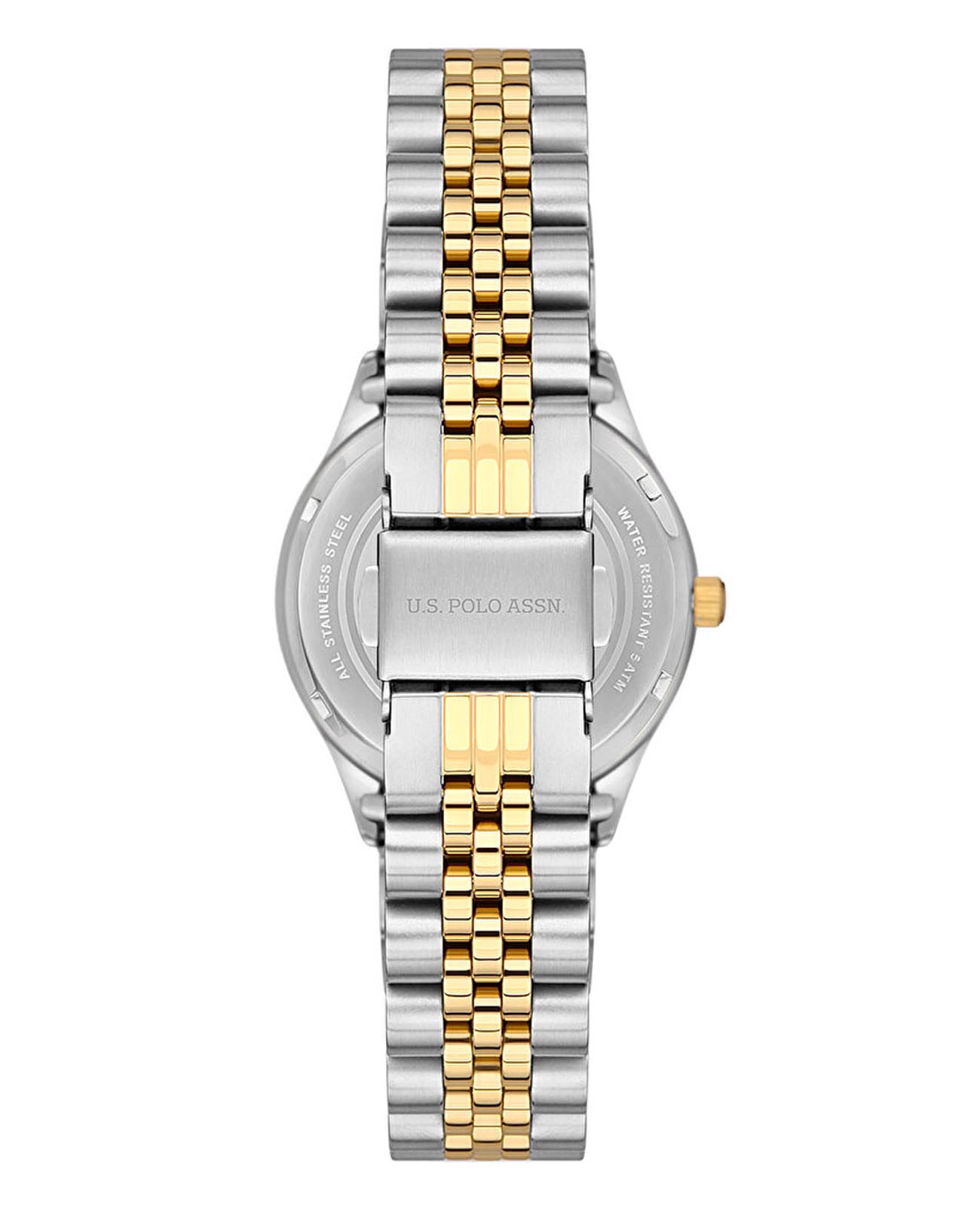 Женские часы U.S. Polo Assn Stile USPA2061-02, кварцевый механизм с высокой точностью. Минеральное стеклоМинеральное стеклоМинеральное стекло представляет собой искусственно выращенный минерал кварца. Такое стекло отличается особой устойчивостью к повреждениям и царапинам. Уступает по некоторым качествам сапфировому стеклу. устойчивое к появлению царапин, обладающее высокой прозрачностью. Корпус изготовлен из нержавеющей стали. БезельБезельВнешний ободок, закрепляющий стекло. В спортивных часах так называется поворотное кольцо с делениями на циферблате, выполняет роль таймера – замеряет отрезки времени на шкале. Неподвижный безель – элемент декора. Однонаправленно вращающийся безель на дайверских часах позволяет фиксировать моменты погружения и выныривания на поверхность. с IP-покрытиемIP-покрытиеМетод ионного напыления. Демонстрирует повышенную устойчивость к истиранию, окислению и химическим веществам. Под воздействием высокого давления и температуры около 1500°C молекулы металла надёжно соединяются с частицами корпуса часов.. Класс водозащиты: 50 метров, позволит защитить корпус от случайных брызг или капель дождя. Стальной браслет с частичным IP-покрытиемIP-покрытиеМетод ионного напыления. Демонстрирует повышенную устойчивость к истиранию, окислению и химическим веществам. Под воздействием высокого давления и температуры около 1500°C молекулы металла надёжно соединяются с частицами корпуса часов. на раскладной застёжкеРаскладная застёжкаТакой тип застёжки используется только на браслетах из металла. Она никогда не раскрывается полностью, происходит разделение на 2 и более частей. Раскладывающая застёжка снизит вероятность потери часов к минимуму..