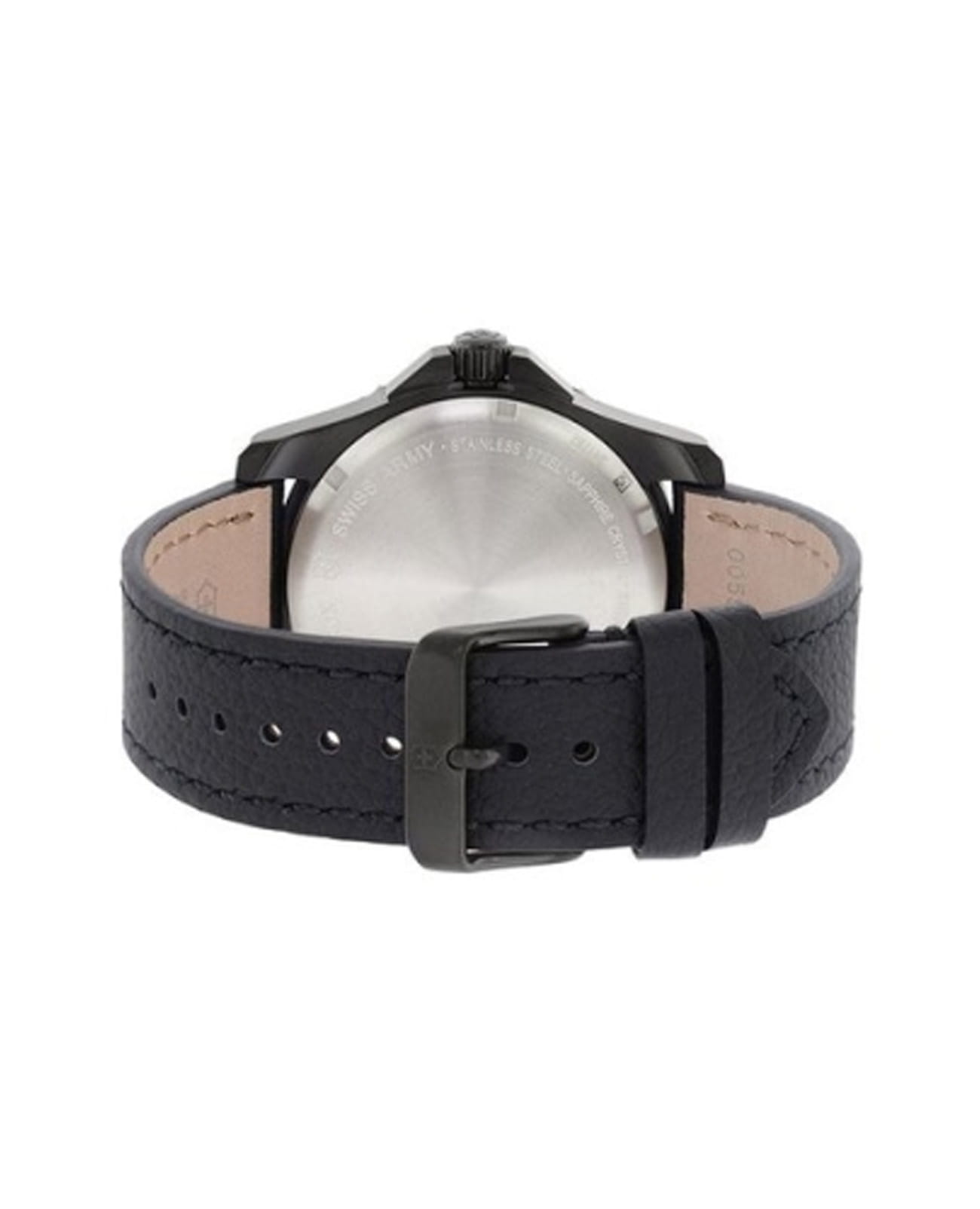 Мужские швейцарские часы Victorinox Maverick 241787, кварцевый механизм с высокой точностью. Сапфировое стеклоСапфировое стеклоПрочный и надёжный материал из кристалла сапфира синтетического происхождения, характеризующийся особой твёрдостью и устойчивостью к царапинам и повреждениям. с трёхслойным антибликовым покрытием. Корпус часов выполнен из нержавеющей стали с PVD-покрытиемPVDУльтратонкое покрытие наносится в технике вакуумного напыления, сочетает в себе нитрид титана особой прочности со слоем золота или оксида хрома. Несёт в себе декоративную или защитную функцию.. Вращающийся стальной безельБезельВнешний ободок, закрепляющий стекло. В спортивных часах так называется поворотное кольцо с делениями на циферблате, выполняет роль таймера – замеряет отрезки времени на шкале. Неподвижный безель – элемент декора. Однонаправленно вращающийся безель на дайверских часах позволяет фиксировать моменты погружения и выныривания на поверхность. с PVD-покрытиемPVDУльтратонкое покрытие наносится в технике вакуумного напыления, сочетает в себе нитрид титана особой прочности со слоем золота или оксида хрома. Несёт в себе декоративную или защитную функцию.. Окошко даты находится в положении 6 часов. Стрелки и метки с люминесцентным покрытиемЛюминесцентное покрытиеПозволяет считывать показания времени в темноте. Производители наносят на стрелки, часовые индексы, безель или поверхность циферблата светонакопительный состав, дающий холодное свечение.. Класс водозащиты: 100 метров, позволит плавать, нырять и заниматься другими водными видами спорта. Кожаный ремешок на стандартной застежке.