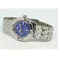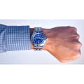 Диаметр корпуса составляет 41 мм, что делает модель универсальной для любого запястья, будь то мужские или женские руки. Дизайн с синим циферблатом и серебристым корпусом создает стильный и сдержанный образ, который идеально подходит как для деловых встреч и официальных мероприятий, так и для повседневной носки.