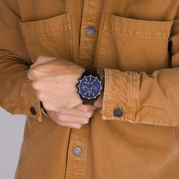 Мужские кварцевые часы Wainer — это стильный аксессуар, сочетающий в себе швейцарское качество и современный дизайн. Модель выполнена в круглой форме из нержавеющей стали с черным PVD-покрытиемPVDУльтратонкое покрытие наносится в технике вакуумного напыления, сочетает в себе нитрид титана особой прочности со слоем золота или оксида хрома. Несёт в себе декоративную или защитную функцию., что придаёт ей устойчивость к царапинам и благородный внешний вид. Циферблат синего цвета дополнен штриховыми метками, а его поверхность защищена сапфировым стекломСапфировое стеклоПрочный и надёжный материал из кристалла сапфира синтетического происхождения, характеризующийся особой твёрдостью и устойчивостью к царапинам и повреждениям., устойчивым к повреждениям. Часы оснащены функцией хронографа, что делает их удобными для измерения времени с высокой точностью. Окошко даты расположено в положении 3 часов, а стрелки и индексы имеют Люминесцентное покрытиеЛюминесцентное покрытиеПозволяет считывать показания времени в темноте. Производители наносят на стрелки, часовые индексы, безель или поверхность циферблата светонакопительный состав, дающий холодное свечение., обеспечивающее отличную читаемость даже в условиях слабого освещения. Браслет из стали с PVD-покрытием шириной 22 мм оснащён Раскладная застёжкаРаскладная застёжкаТакой тип застёжки используется только на браслетах из металла. Она никогда не раскрывается полностью, происходит разделение на 2 и более частей. Раскладывающая застёжка снизит вероятность потери часов к минимуму., обеспечивающей комфорт и надёжную фиксацию на запястье. Водонепроницаемость позволяет использовать модель при мытье рук или под лёгким дождём. Калибр Ronda 5030.D гарантирует точность хода и надёжность. Эти часы станут универсальным аксессуаром для тех, кто ценит сочетание стиля, функциональности и швейцарского мастерства — идеальный выбор для повседневной носки и деловых встреч.