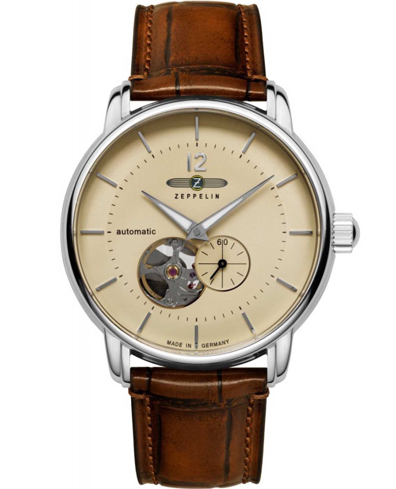Часы Zeppelin 81661 — это элегантные мужские часы с автоподзаводом, которые поражают своим классическим стилем и точностью исполнения. Корпус из нержавеющей стали серебристого цвета гармонично сочетается с бежевым циферблатом, украшенным окошком даты в положении 3 часа, а секундная стрелка вынесена на малый циферблат. Механизм 82S5 Miyota обеспечивает надежность. Циферблат защищен закаленным минеральным стекломМинеральное стеклоМинеральное стекло представляет собой искусственно выращенный минерал кварца. Такое стекло отличается особой устойчивостью к повреждениям и царапинам. Уступает по некоторым качествам сапфировому стеклу., а коричневый кожаный ремешок придает ему элегантный вид. Стрелки покрыты люминесцентным покрытиемЛюминесцентное покрытиеПозволяет считывать показания времени в темноте. Производители наносят на стрелки, часовые индексы, безель или поверхность циферблата светонакопительный состав, дающий холодное свечение.. Водонепроницаемость часов достигает 50 метров, что делает их идеальным выбором для повседневного ношения.