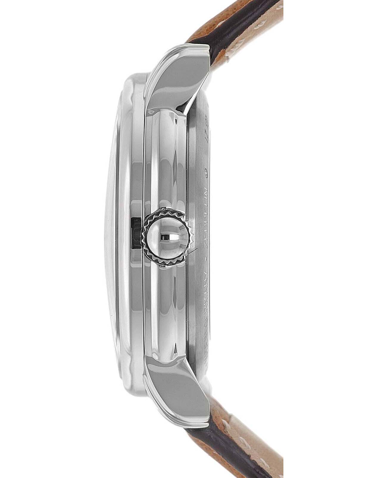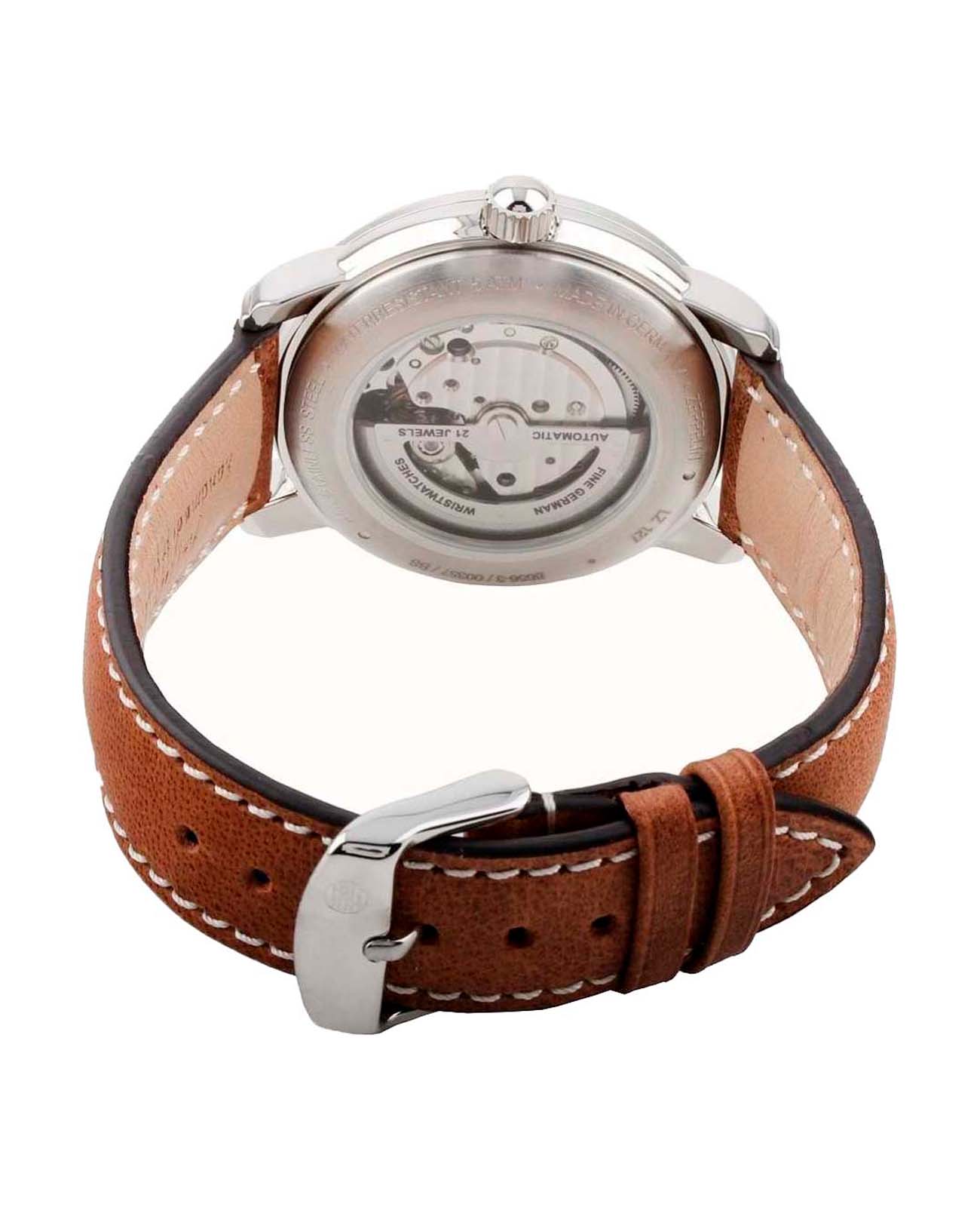Мужские наручные часы Zeppelin 86563 из коллекции LZ127 Graf Zeppelin сочетают в себе классический дизайн и надежность современных технологий. Модель обладает круглым корпусом диаметром 40 мм, изготовленным из нержавеющей стали, что обеспечивает высокую устойчивость к внешним воздействиям. Браслет выполнен из кожи, гарантирующей комфортное ношение. Черный циферблат с 24-часовой шкалой оснащен индикаторами часов, минут, делая их идеальными для путешествий или работы в международном формате . Для защиты используется минеральное стеклоМинеральное стеклоМинеральное стекло представляет собой искусственно выращенный минерал кварца. Такое стекло отличается особой устойчивостью к повреждениям и царапинам. Уступает по некоторым качествам сапфировому стеклу., обеспечивающее прочную защиту от повреждений. Часы работают на механическом механизме с автоподзаводом, который содержит 21 драгоценный камень, что снижает трение и увеличивает запас хода и точность работы. Водонепроницаемость часов достигает 5 атмосфер (50 метров), что позволяет использовать их во время плавания на поверхности, однако не рекомендуется для глубоководного дайвинга или занятий водными видами спорта с высоким уровнем активности].